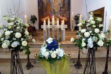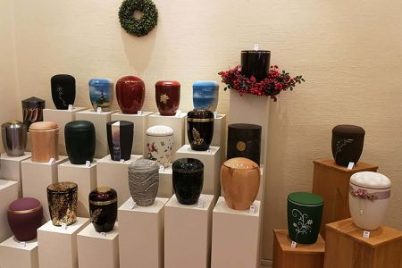 In unserem Hause ist uns eine persönliche, vertrauensvolle Atmosphäre ganz besonders wichtig. Daher empfangen wir Sie in unseren freundlich-hellen Räumlichkeiten und sind auch dann für Sie da, wenn Sie nur mal eine Frage stellen möchten. In unserer umfangreichen Sarg- und Urnenausstellung können Sie sich verschiedene Materialien, Farben und Formen in allen Preisklassen ansehen. So können Sie direkt vor Ort etwas Passendes auswählen. Gerne kommen wir auch zu Ihnen nach Hause – völlig kostenfrei.